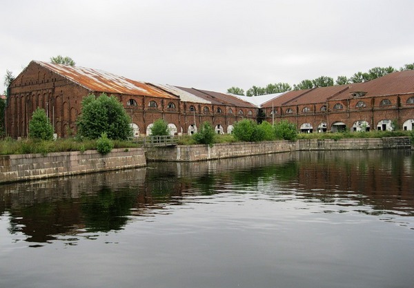 Строительство складов на этом острове началось в 1732 году, по проекту архитектора И. Коробова. Его задачей было построить по периметру острова сеть бассейнов и складов, которые будут